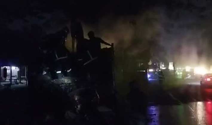 আকিজ পেপার মিলের সামনে পণ্যবাহী ট্রাকে আগুন