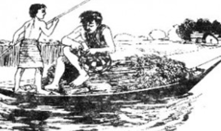 তারপর হঠাৎ জমির মালিকের ওপর গিয়ে পড়ে তার রাগ। সে বিড়বিড় করে বলে,—ব্যাডা তো ঢাকার শহরে ফটেং বাবু অইয়া বইসা আছে। থাবাডা দিয়া আধাডা ভাগ লইয়া যাইব। ব্যাডারে একদিন পচা পানির কামড় খাওয়াইতে পারতাম!ওসমান আজ আর কাজ করবে না। সিদ্ধান্ত করবার সাথে সাথে সে জোরে ডাক দেয়, তোতারে—উ—দুই ডাকের পর ওদিক থেকে সাড়া আসে, আহি—অ— —আয়, তোর আহিডা বাইর করমু হনে। পাটের হাতাগুলো এক জায়গায় জড় করতে করতে গজগজ করে ওসমান,—আমি বুইড়্যা খাইট্যা মরি আর ওরা একপাল আছে বইসা গিলবার। তোতা নৌকা নিয়ে আসে। এত সকালে তার আসার কথা নয়। তবুও ওসমান ফেটে পড়ে, এতক্ষণ কি করছিলি, অ্যাঁ? তোরে না কইছিলাম ছুট্টি লইয়া আগে আইতে? ছুট্টি না দিলে পলাইয়া আইতে পারস নাই?—আগেই আইছিলাম। মা কইছিল আর একটু দেরি কর। ভাত অইলে ফ্যানডা লইয়া যাইস।—ফ্যান আনছস্? দে দে শিগ্গীর। তোতা মাটির খোরাটা এগিয়ে দেয়। লবণ মেশান একখোরা ফেন। ওসমান পানির মধ্যে দাঁড়িয়েই চুমুক দেয়। সবটা শেষ করে অস্ফুটস্বরে বলে,—শুকুর আলহামদুলিল্লাহ। ফেনটুকু পাঠিয়েছে এ জন্যে স্ত্রীকেও ধন্যবাদ জানায় তার অন্তরের ভাষা। এ রকম খাটুনির পর এ ফেনটুকু পেটে না দিলে সে পানি থেকে উঠতেই পারে না নৌকার ওপর। এবার আউশ ধান কাটার সময় থেকেই এ-দশা হয়েছে। অথচ কতইবা আর তার বয়স! চলি্লশ হয়েছে কি হয়নি। ওসমান পাটের হাতাগুলো তুলে ধরে। তোতা সেগুলো টেনে তোলে নৌকায় গুনে গুনে সাজিয়ে রাখে। পাট তুলতে তুলতে ওসমান জিজ্ঞেস করে ছেলেকে,—কি রান্ছে রে তোর মা?—ট্যাংরা মাছ আর কলমী শাক।—মাছ পাইল কই?—