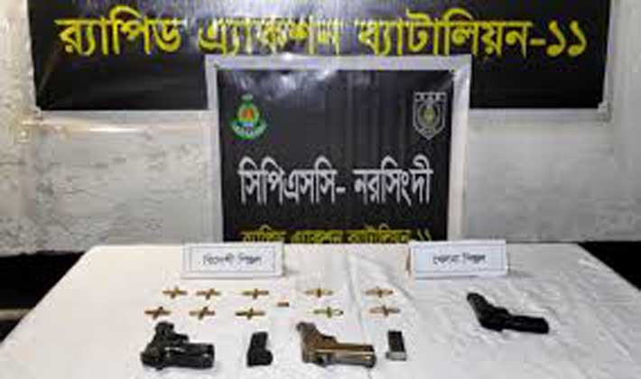 র‍্যাব সূত্রে জানা গেছে, মঙ্গলবার রাত আনুমানিক ১১টার দিকে নরসিংদী সদর থানাধীন তরুয়া এলাকার মোল্লার বাড়ির সামনে তরুয়া বিলে পানির ভেতর থেকে এসব আগ্নেয়াস্ত্র উদ্ধার করা হয়।
