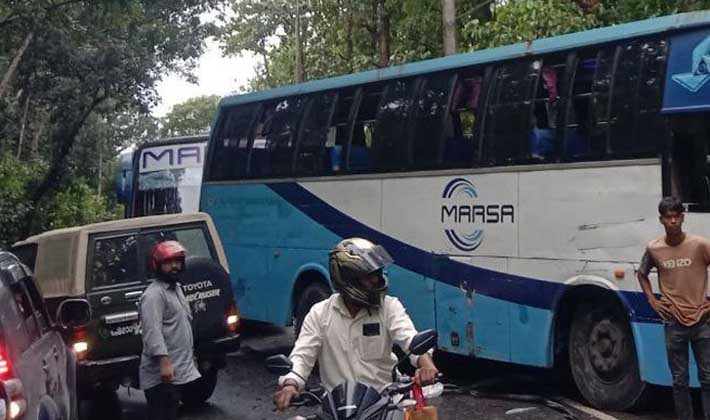 স্থানীয় সূত্রে জানা গেছে, বেপরোয়া গতির যাত্রীবাহী মারছা বাসের সাথে সংঘর্ষ লাগে নোহা মাইক্রো বাসের। সংঘর্ষে নোয়া মাইক্রো বাসটি দুমড়ে মুচড়ে যায়। মারছা বাসের সামনের আয়না ও দরজাসহ নানা অংশের ক্ষতি হয়