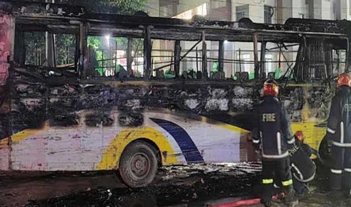 কিশোরগঞ্জে বাসে আগুন, ভাগ্যক্রমে বেঁচে গেল ঘুমন্ত হেলপার