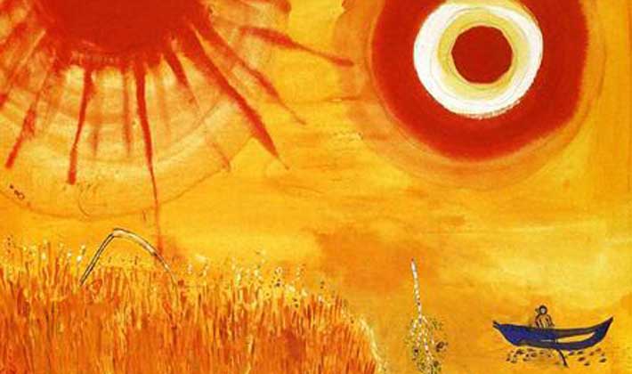 এগিয়ে যাচ্ছে সূর্যের সুবর্ণরেখায় আঁকা সোনালি পুকুরে