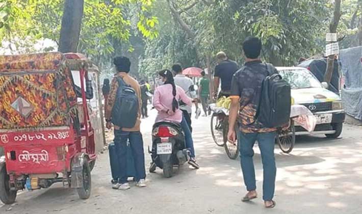 আজ সকালে দেখা গেছে, মেয়েদের হল থেকে অনেক শিক্ষার্থী বাড়ির উদ্দেশে রওনা হয়েছে। ছেলেদের হল থেকেও শিক্ষার্থীরা বের হচ্ছে। তবে অনেকে এখনো দ্বিধায় রয়েছে।