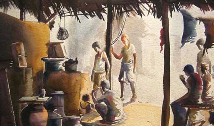 বিদ্যা : যাচ্ছি খুড়ো, অত তাড়া কিসের! আজ তোমার বেশী খদ্দের হবে না।