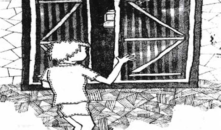 খুব সন্তর্পণে পা ফেলে খোকা এসে দাঁড়াল জানালার কাছে। জানালাটা বন্ধ।। কিন্তু কাঠের ফাঁক দিয়ে চোখ রাখলে ঘরের ভেতরটা বেশ দেখা যায়। একবার দৃষ্টি দিয়েই শুকিয়ে উঠল খোকার অন্তরাত্মা। দেখল, ঘরের ভেতর একপাশে একটা ভাঙা লণ্ঠন জ্বলছে। আবছা আলোয় দশ বারো জন লোক বসে আছে। তাদের সবাইকে ভাল করে দেখা যায় না। তবু যা দেখলে তাতেই খোকার প্রাণ যায় যায়।  একটা লোক হতভম্বের মতো ঘরের মধ্যে একটা চেয়ারে বসে আছে আর একদল লোক দাঁড়িয়ে আছে সামনে, হাতে রিভলবার। বাকি লোকগুলো ওকে ঘিরে রয়েছে। চেয়ারে উপবিষ্ট লোকটা বলছে, না, ও কাজ আমাকে দিয়ে হবে না।