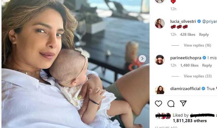 সম্প্রতি প্রিয়াঙ্কা চোপড়া তার ইন্সটাগ্রামে কন্যা মালতিসহ ছবি পোস্ট দেন। সেখানে প্রিয়াঙ্কা বলেন, “মা মেয়ের এই একান্ত সময়টার মূল্য অনেক। এর চেয়ে জীবনে শান্তির কিছু হতে পারে না।”