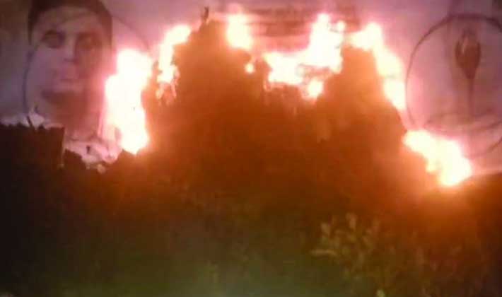 হাসনাতের ব্যানারে আগুন, এলাকায় উত্তেজনা